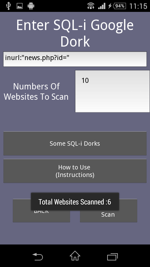 يمكنك البحث عن ثغرات sql و البحث عن المواقع المصابة بأستخدام هاتفك النقال باستخدام هذه الاداة
